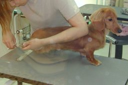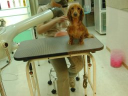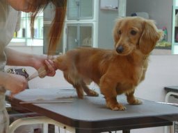 さあ、ハッピーちゃん、 おりこうにしようね。 と、やさしくいいながら・・・・、 しっぽ、ひっぱるなー! |