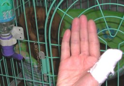 | ふと気がつくと、 ママの指に痛々しい包帯が・・・・ |