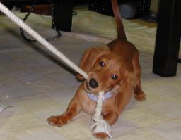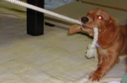 おっ! 突然現われたる、なぞのツナ・・・・、 これはいったい・・・・・? さては、このハッピー様と綱引きでもしようと? 上等じゃねーか!うけてたってやるわ! さあ-、めらめらと燃えてきたぜー! |