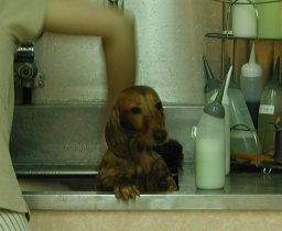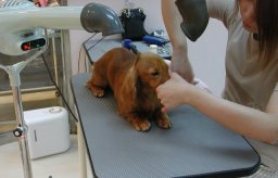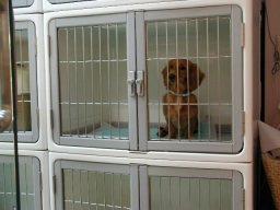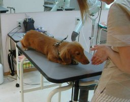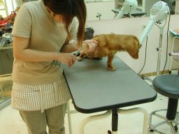 さあ、ハッピーちゃん、 おりこうにしようね。 と、やさしくいいながら・・・・、 しっぽ、ひっぱるなー! |