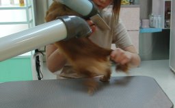 | ドライヤー、大きらいー、 たすけてー!! こらー、のぼるなーっ |
