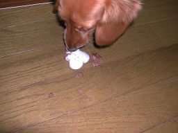 | 君たちペットは、 人間の幸福のために生きている。 だから、普通はこういうことはしないのだが、 きょうは特別に、犬の君にもプレゼントをあげよう。 |