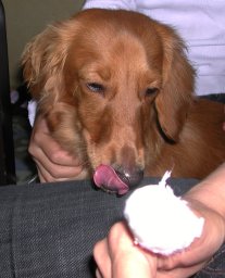 ママ 「これ、ハッピーがかんだのよー!」 ハッピー 「えっ?ぜんぜん記憶にございませんが?」 |