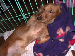 | 「すなおにあやまりなさいー!! でないと、こんな写真付で、新聞にのるわよ!」 「ハッピー容疑犬(1才)は、サークルに戻される際、足を柵に挟まれ、痛さのあまり、助けようとした飼い主の指をかみ、全治1週間の怪我をおわせました。。 ハッピー容疑犬は、今朝、業務上過失傷害罪の疑いで逮捕されました。」 |