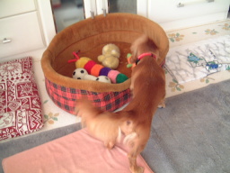 | おっ おもちゃがいっぱいあるぞ。 えーと、ここで遊んでよろしいでしょうか? |
