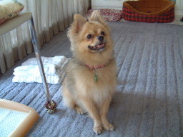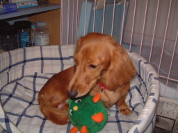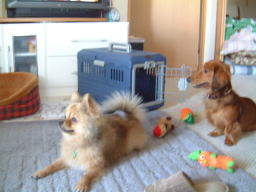 | いよー、みなさーん、こんにちはー! ここがどこだかわかるかな〜? 実は、家の人が旅行するんで、ぼくだけニックくんとマッシュくんの家にお世話になることになりました! はじめてのお泊まりで、ちょっと、こわい・・・ |