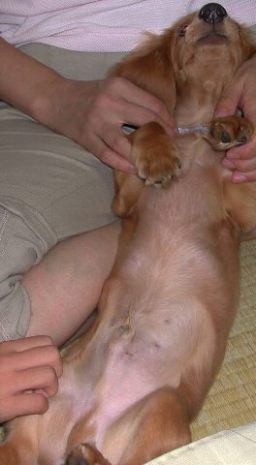 これぞ、われら犬の・・・・・ かがぁ〜みぃ〜! あ、くらくらする・・・ |